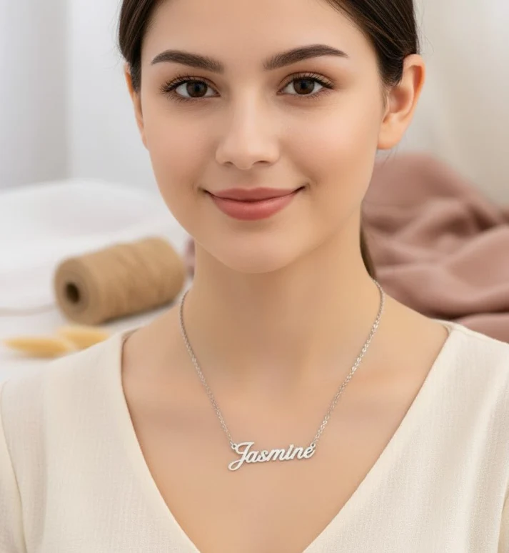 - Pendant Style: Custom cursive English name pendant