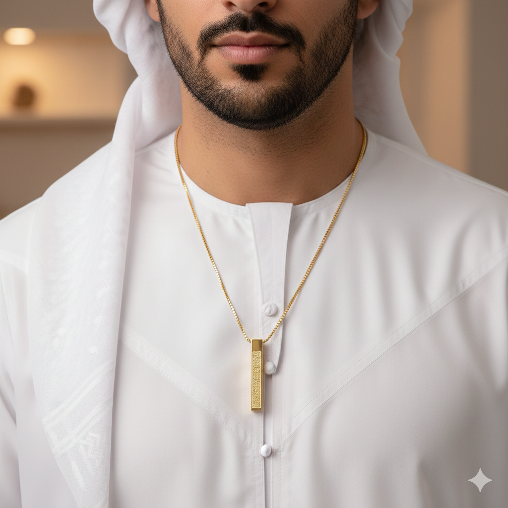 - Sleek Bar Design: Minimalist vertical rectangular pendant adds a contemporary touch to traditional Islamic jewelry.